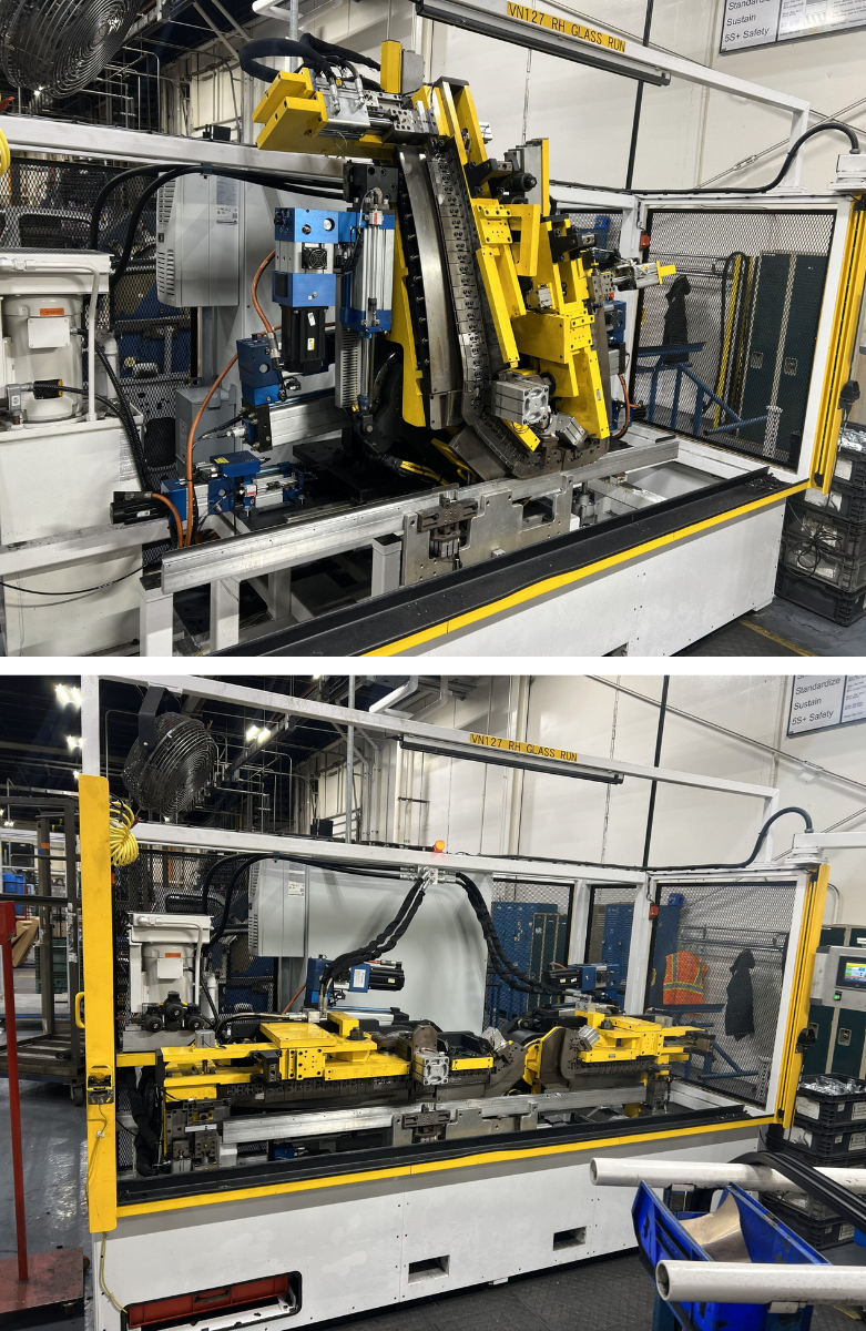 An automotive Tier 1 supplier needed to replace an aging rubber extrusion bending machine. Working closely with a machine integrator, the customer wanted to eliminate traditional hydraulic power unit, hoses, and cylinders to save energy, reduce maintenance, downtime, and environmental concerns.
