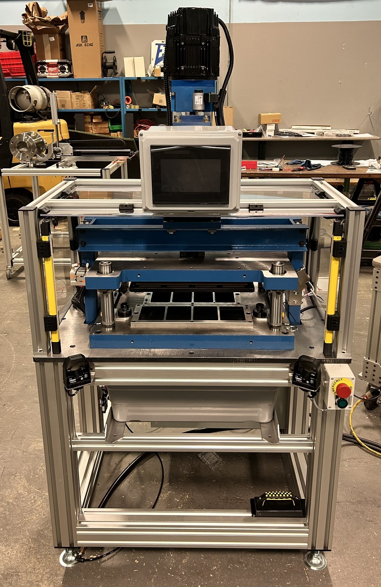 An automation integrator was tasked with delivering a compact, energy-efficient actuation system for a customer’s blister pack press application. The system required precise, repeatable motion control and sufficient force to perform press operations—without the size, complexity, reliability risk, or cost associated with traditional hydraulic systems or roller-screw electric actuators.